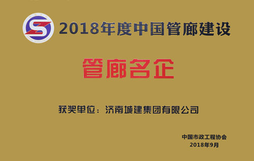 集团荣获“2018年度中国管廊建设管廊名企”