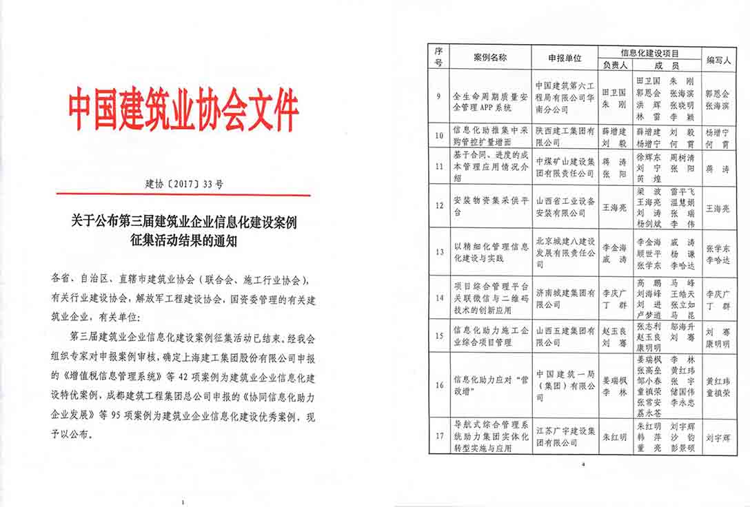 集团荣获第三届“建筑业企业信息化建设特优案例”