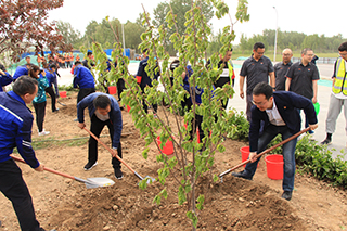在植树活动现场大家进行了任务分工,有的负责树坑开挖,有的负责把树苗放进挖好的树坑里,,,,,,,,有的进行树苗培土,,,,,,,,有的用水桶接水浇灌载好的树苗。。。。。。大家用双手把一块块绿色的草皮亲手栽种在了车站周边的绿化带里,,,,,,,,为这里增添了一抹绿色。。。。。。通过大家的努力,,,,,,,,项目周围绿化环境有了明显提高。。。。。。