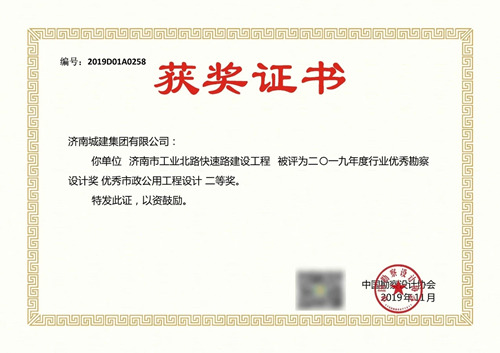 济南市工业北路快速路建设工程被评为2019年度行业优秀勘察设计奖优秀市政公用工程设计二等奖