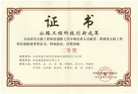 水泥基超早强高性能修补剂的研究与应用获公路工程科技创新成果二等奖