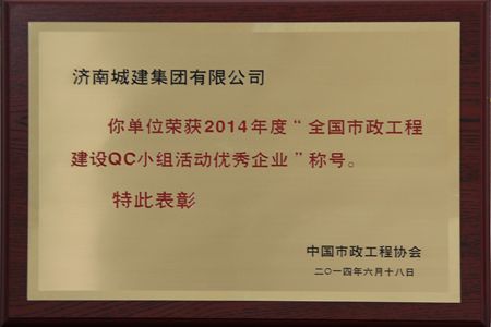 恒峰g22荣获2014年度“全国市政工程建设QC小组活动优秀企业”称号