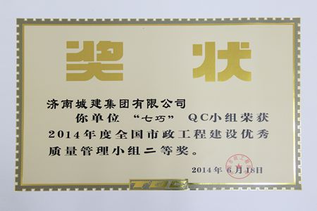 “七巧”QC小组荣获2014年度全国市政工程建设优秀质量管理小组二等奖