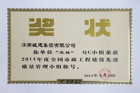 “昌林”QC小组荣获2014年度全国市政工程建设先进质量管理小组称号